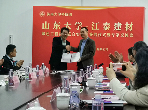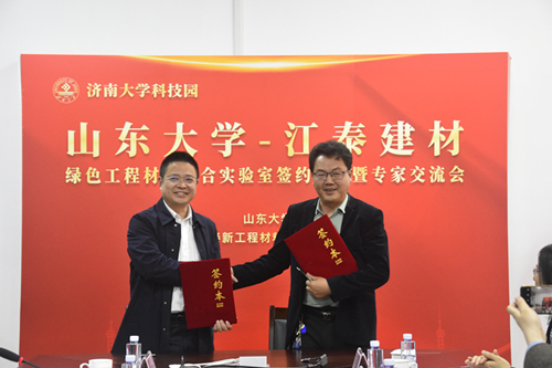 2023年5月6日上午9:00,山東大學(xué)-江泰新工程材料集團(tuán)聯(lián)合實(shí)驗(yàn)室簽約儀式在濟(jì)南大學(xué)科技園東單元4F會議室舉行。