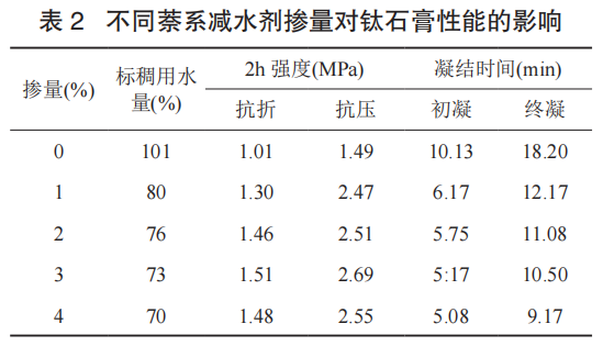 2.3.1 萘系減水劑對(duì)鈦石膏性能的影響