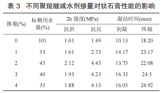 2.3.2 聚羧酸減水劑對(duì)鈦石膏性能的影響