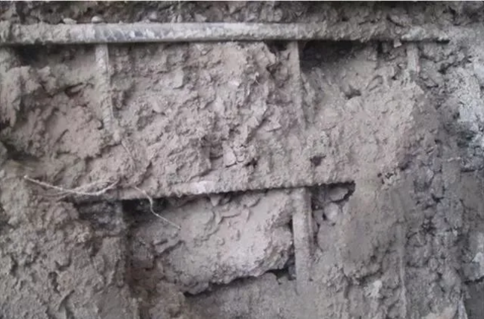 ◆ 混凝土保護(hù)層太小或保護(hù)層處混凝土漏振、振搗棒撞擊鋼筋或踩踏鋼筋,使鋼筋位移造成露筋;