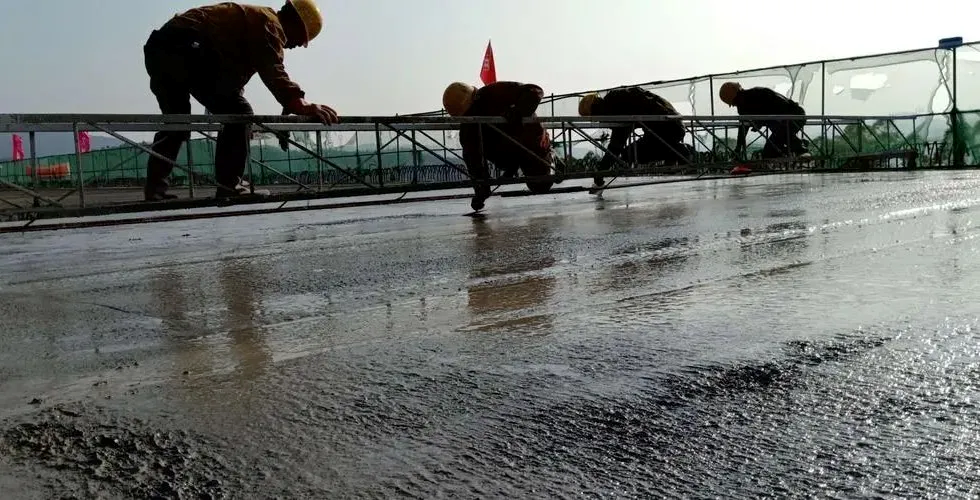 進一步來說,在混凝土澆筑的過程中,如果遇到雨水沖刷或者空氣濕度較大導致混凝土表面出現(xiàn)大量泌水的情況,可以采取一定的應(yīng)急措施。例如,在混凝土表面均勻撒布干水泥,并使用鐵筢子來回拉幾遍,使其與混凝土表面充分接觸。隨后,通過抹壓工序使水泥粉與混凝土更好地結(jié)合,從而有效應(yīng)對泌水問題。